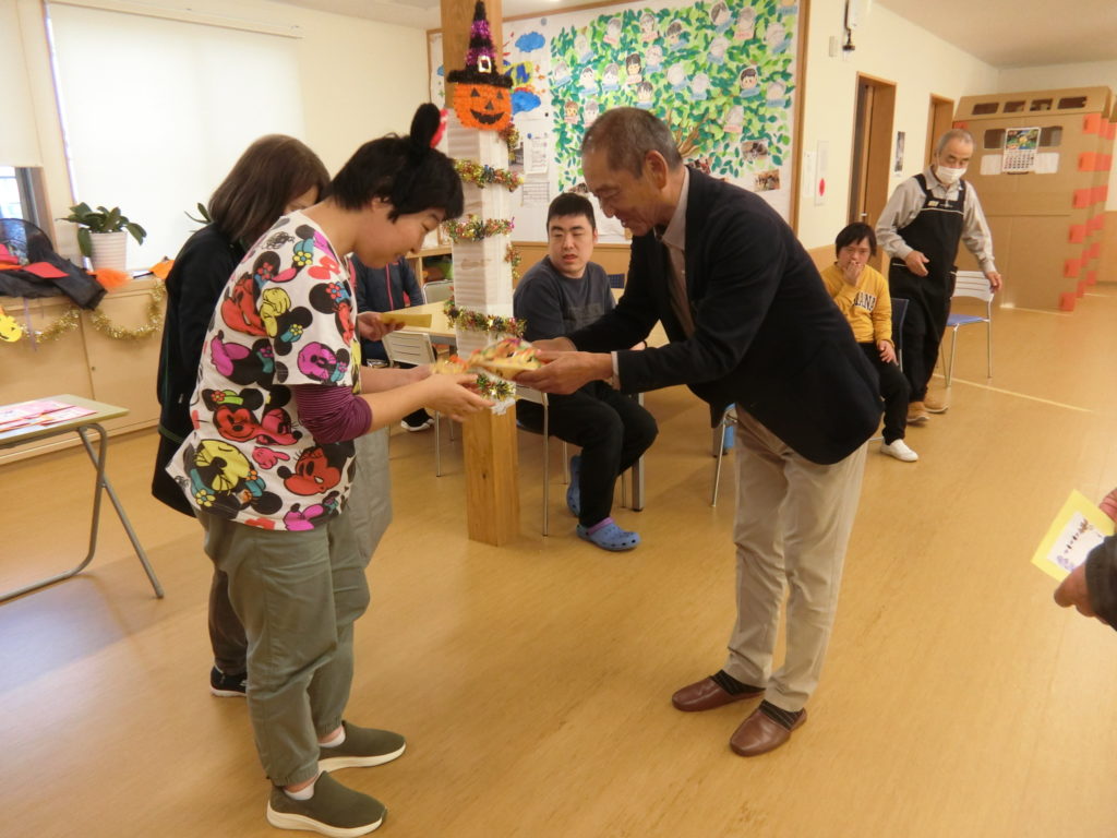 理事長さんからお菓子をいただき、利用者さんも理事の皆さまにお菓子をプレゼントしました☆