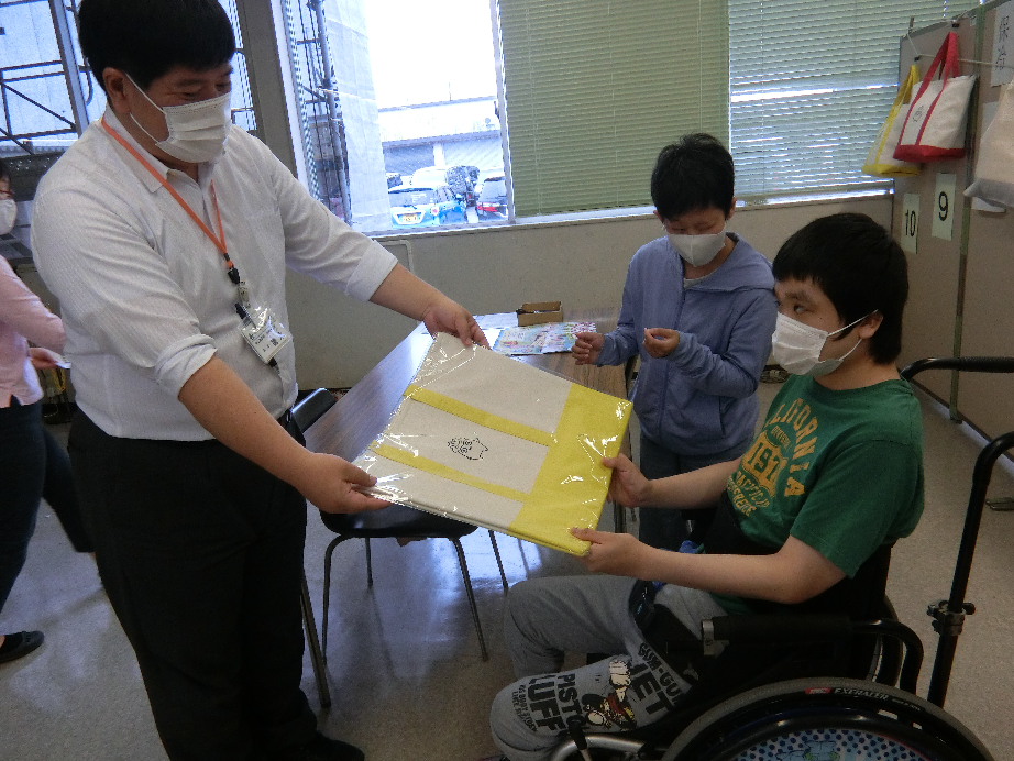 見事スタンプを集めて本日、ご利用者さんと引き換えに行ってきました。