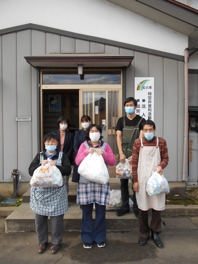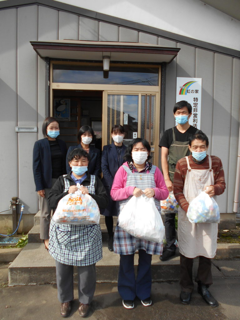 10月27日に明治安田生命長岡支社の青木様他2名の方々から大量のペットボトルのキャップを寄贈していただきました。