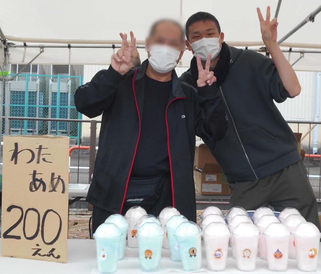 利益は全て利用者の皆さんに工賃として役立たせていただきます。「フリマ商品」を提供して頂いた皆様の善意や「綿あめ」「ひもくじ」も含めてそれらを購買して頂いた皆様の温かい気持ちに支えられて、利用者の皆さんも接客や会計の仕事を一生懸命に頑張りました。