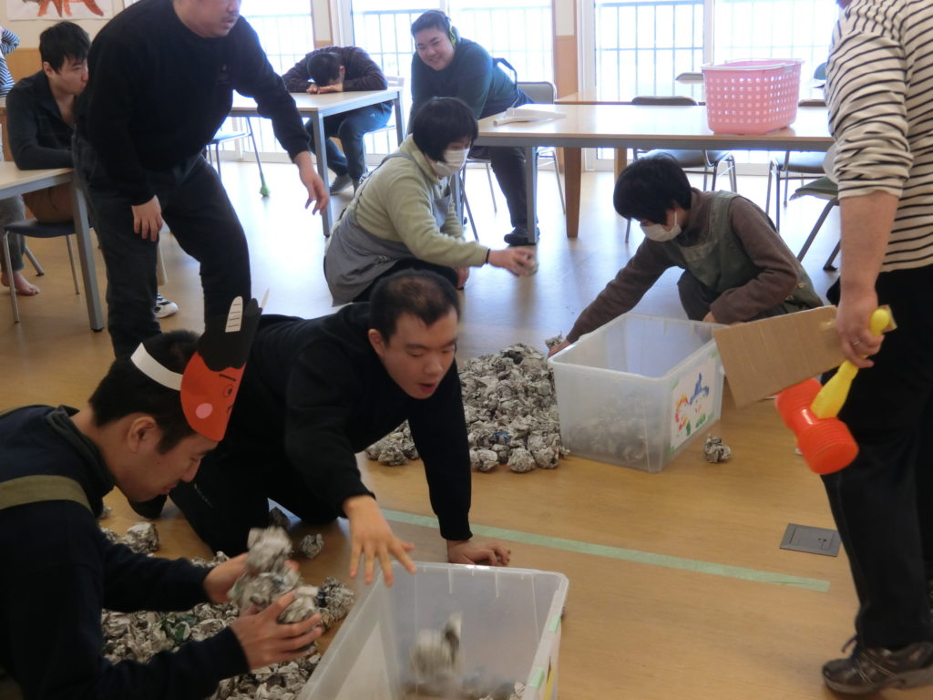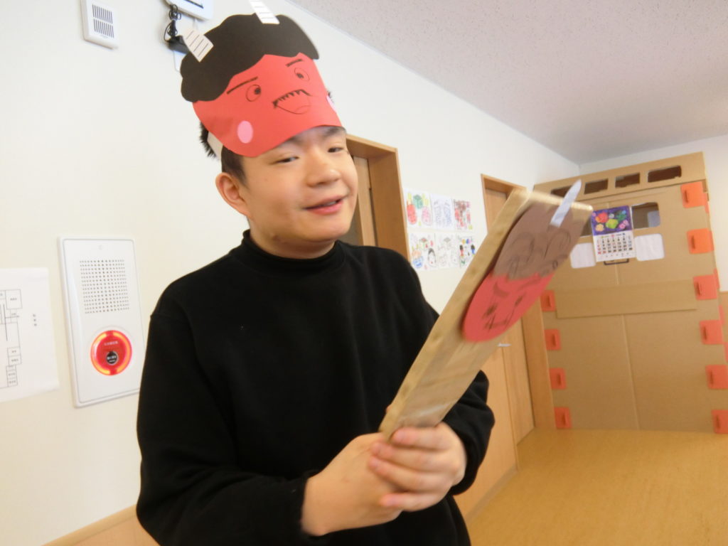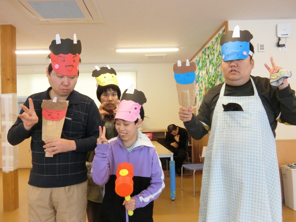 デイスマイルで最初の節分会です。今回は沢山の利用者さんが鬼役に参加してくれました!