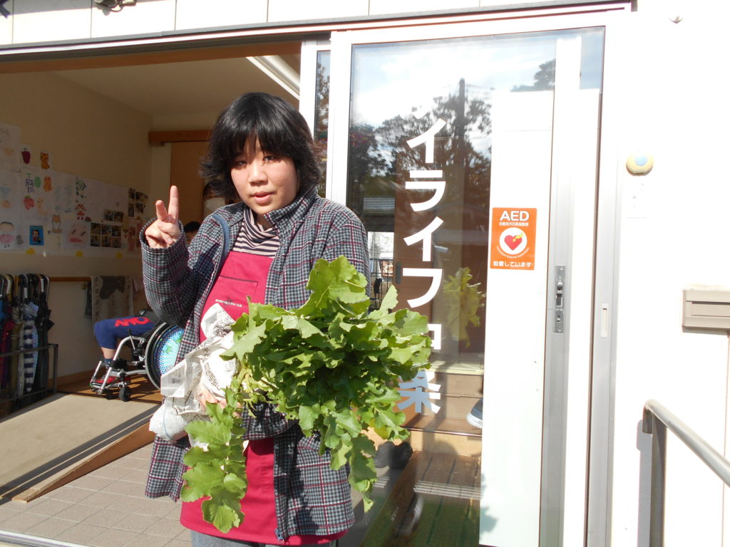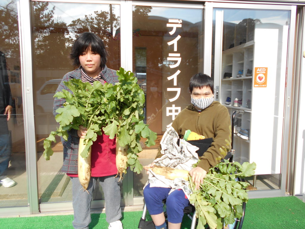 誕生会当日は、料理上手な職員のおかげで美味しい大根サラダに変身しました。わずかな量ですが、自分たちが手塩にかけて育てた野菜が、他の人たちを笑顔にするという喜びを感じられてほっこりする機会になりました。